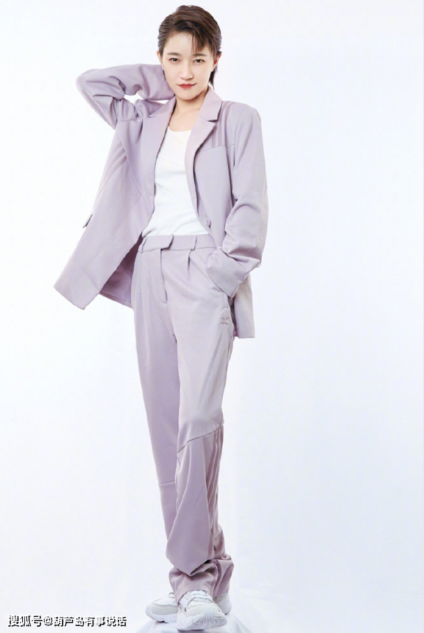 她的这身穿搭看着就比较干练了呢,身穿了一套紫色的西装套装,优雅的紫色穿后带有一点高级感,而且焦俊艳的气质也可以轻松驾驭好这样的颜色呢,干净利落的短发显得格外的迷人。