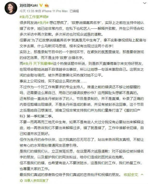 声明内容有些是可取的,比如澄清网上流传的朱丹叫错马思纯的视频是有人拿不实影像视频贴上配音与文字特意来黑朱丹,实际上只是节目中的一个接龙游戏。