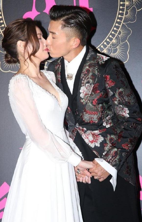 今天,TVB上位小生陈山聪和太太Apple在尖沙咀设宴17席,与亲朋好友分享新婚的喜悦。一对新人以结婚礼服亮相,穿上花花礼服的陈山聪,更弯腰为太太整理裙尾,十分贴心。而穿上低胸婚紗的Apple小腹并未见隆起,但手上的两卡钻戒却相当的抢眼。二人应要求亲吻影相,而Apple显得有些紧张,断断续续亲了将近1分钟。随后由由陈山聪独自接受访问,Apple则先到场内休息。