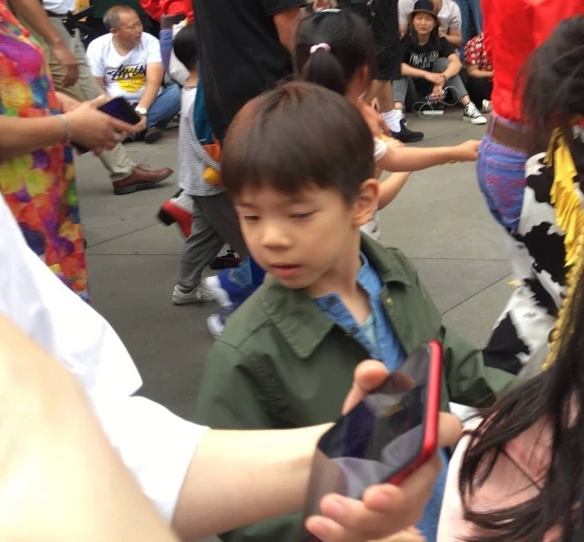 嗯哼跟妈妈一样,穿外套搭配牛仔裤,十分大方露出真容,没有像妈妈那样包裹严实。