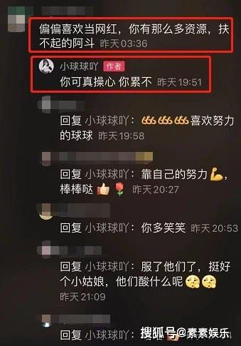 网友的留言有点重,但球球的回应就是“你可真操心,你累不?”简单的一句话,似乎告诉了大家她还是一个有脾气让小姑娘,所以请你放尊重一点。