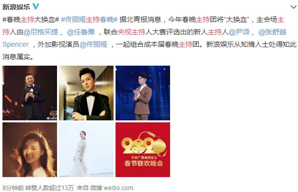 虽然小8和大伙一样,都希望在央视春晚上看见央视一哥一姐们的现身,但央视春晚主持阵容就算是为了靠近年轻人再或者给机会新人,机会也不能这么给呀。