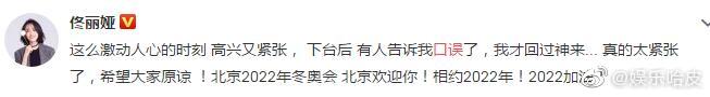 不过,佟丽娅真的在直播中犯过错误。此前冬奥会1000天倒计时的晚会直播中,佟丽娅把2022说成了2002,当时现场一片尴尬,会后佟丽娅也立马发文表达自己的歉意。