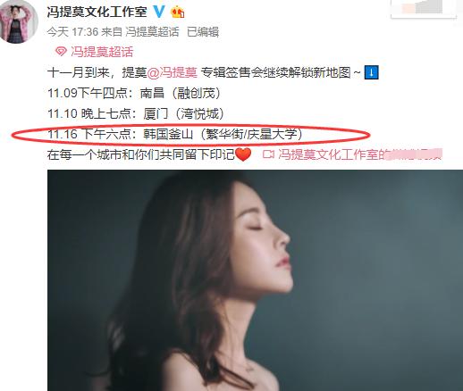 反响越来越好,影响力越来越大,冯提莫的签售会也是越来越多了,巡回签售会走起,可以看到,这之后城市的安排,最给力的是,还有韩国哦,这个牌面十足了。
