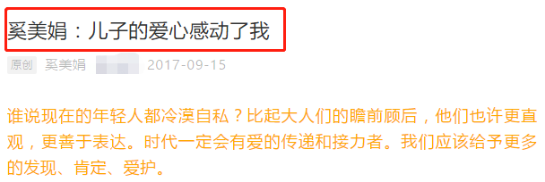 经常撰稿的奚美娟还曾发表过关于养育儿子过程中的心得感受,可见她的拳拳母爱。且儿子也被她教育的品德优良。