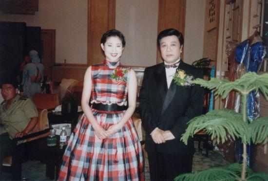 在此期间,两人多次同框,贡献了很多堪称经典的春晚搭档造型。赵忠祥的领带或是领结这一类的小细节,基本都配合着倪萍的服装。比如倪萍身上这件红色的格纹礼服裙,赵忠祥就用一个同款花色的格纹小领结做了呼应,从细节上全方位的配合自己的搭档。