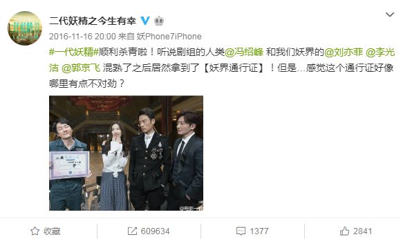 2016年8月,由刘亦菲、冯绍峰主演的电影《一代妖精》正式开机,该片讲述了来到现代城市报恩的狐妖白纤楚,爱上了人类袁帅,却遭到妖管局局长的极力阻止,从而引发了一场妖界纷争的故事。影片在杀青之时还叫做《一代妖精》,但等到定档上映之际电影则改名为《二代妖精之今生有幸》。