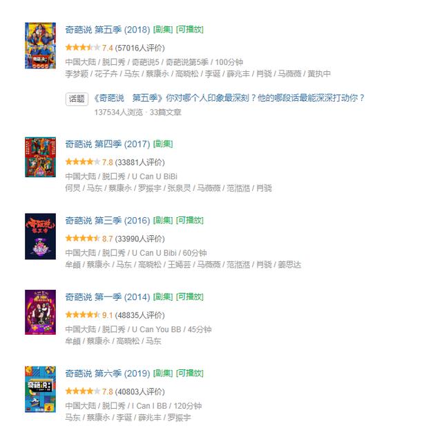 要说起国内网络的发展又如何迅速,网综和网剧就是最好的例子。从无人问津到大牌明星挤着分饼真的是短短几年就做到了,说起网综的代名词,《奇葩说》这个节目就格外有地位,这个眼见着网综事业高楼起的综艺,今年做到第六季了。