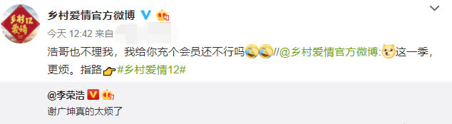 其实李荣浩和乡爱的渊源还深着呢,曾经他吐槽“谢广坤太烦人了”,不久被谢广坤本人亲自艾特,李荣浩依旧逗比性格回复,也是逗笑了不少吃瓜群众,甚至想看谢广坤和李荣浩互相薅头发???