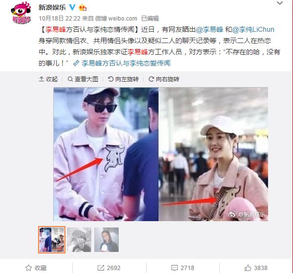 人红是非多,李纯也有很多绯闻。2018年10月份,有网友爆料李易峰和李纯正在谈恋爱,并且晒出“证据”:两人身着同款外套,共用情侣头像,甚至还贴出疑似李易峰和李纯的聊天记录。其实在网传两人相恋消息刚刚爆出时,就有媒体求证李易峰方工作人员,得到的回应是:“不存在的哈,没有的事儿!”