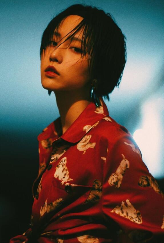 利落的短发造型搭配红色印花衬衫,看上去有几分“假小子”的感觉,怪不得是连直男都认可的颜值。