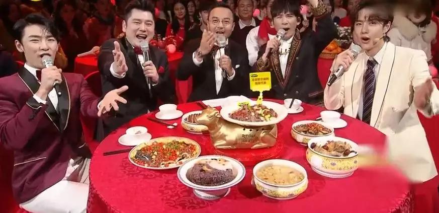 晚会上天天兄弟们带来了一桌湖南特色的年夜饭,他们围坐桌旁,先听汪涵给大家介绍每道湘菜,当介绍到“小炒黄牛肉”这道菜时,汪涵说“一定要给年纪最小的一博弟弟推荐这道菜,祝他新的一年牛气冲天”。