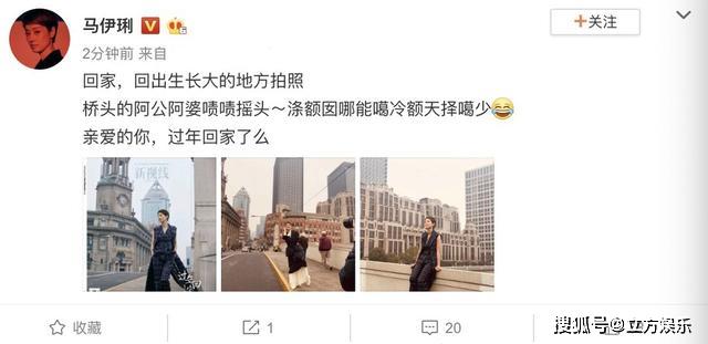 1月19日,马伊琍在微博晒出一组三连拍,同时配文"回家,回出生长大的地方拍照。"看得出来,这是她为某杂志拍摄的最新时尚大片,而取景地特意选在了老家附近。作为土生土长的上海人,马伊琍还秀了一句上海方言,这原汁原味的感觉说来也是没谁了。