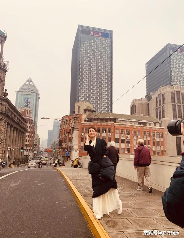 不得不说,马伊琍很会选地方。身后的格子高楼如华夫饼一般,和她的衣服款式反而非常搭。坐在桥边,展示出女人最自信的一面,这是马伊琍素来擅长的。可惜的是,马伊琍与文章的小家已然不复存在,再结合"过年回家"的主题,不免有种荒凉的意味。