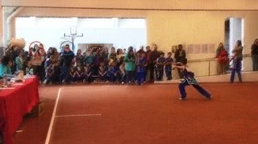 长得手长脚长的李长智十分淡定,表演棍术时虎虎生风,甚有大将之风。