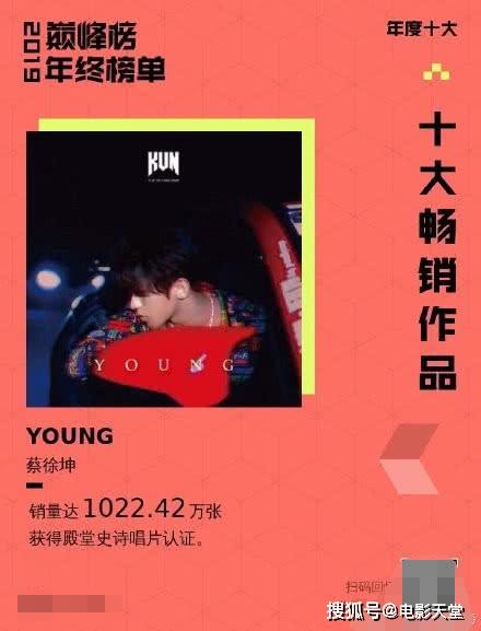 紧随其后的就是圈里的顶流蔡徐坤了,专辑《YOUNG》刚一上线就打破多项历史记录,最终以1022.42万张的销量占据此榜单的第二名。都说去年一件事肖战、王一博、李现等人的天下,蔡徐坤已经凉了,如今来看显然不是如此啊,顶流的实力依旧不容小觑。