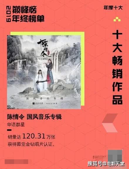 而相比于周杰伦,肖战和王一博主演的电视剧《陈情令》的国风音乐专辑就更不值一提了。120万的销量在此份榜单中几乎是垫底的存在,如果不是火箭少女101的《立风》之称,那《陈情令》的国风音乐专辑就真的倒数第一了,而届时肖战和王一博的粉丝恐怕就再也不好意思吹嘘自家爱豆比蔡徐坤有多优秀了。