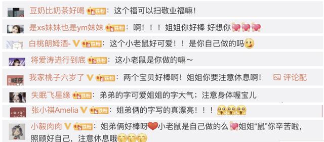 网友评论道:这个肖老师好可爱,两个宝贝好棒啊,姐姐你要注意休息啊,弟弟的字可爱姐姐的字大气。