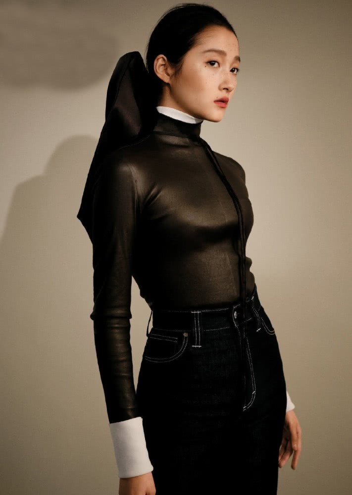 这张写真中关晓彤就开始走性感路线了,上半身穿了一件黑色的紧身衣,轻松秀场傲人上围,看得人心动不已,搭配上下面的黑色的牛仔裤,显得性感撩人的同时也展现出了强大的气场。