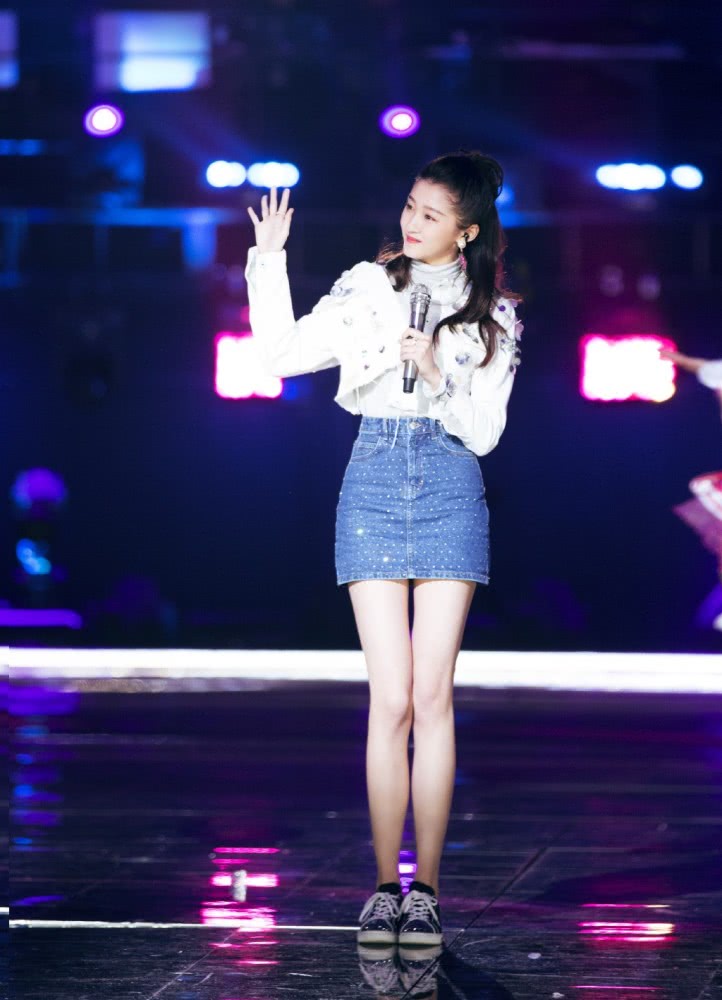 关晓彤身穿一件白色的短款外套搭配上牛仔短裙,非常性感撩人的穿搭,不仅很显高,还轻松秀出白皙美腿,非常吸睛。