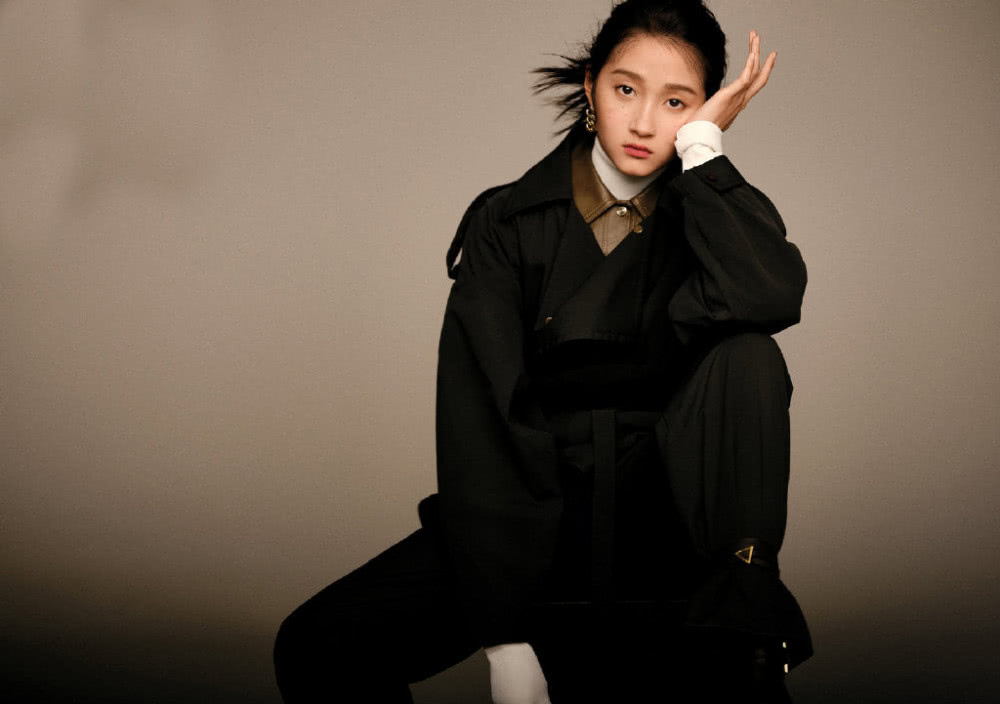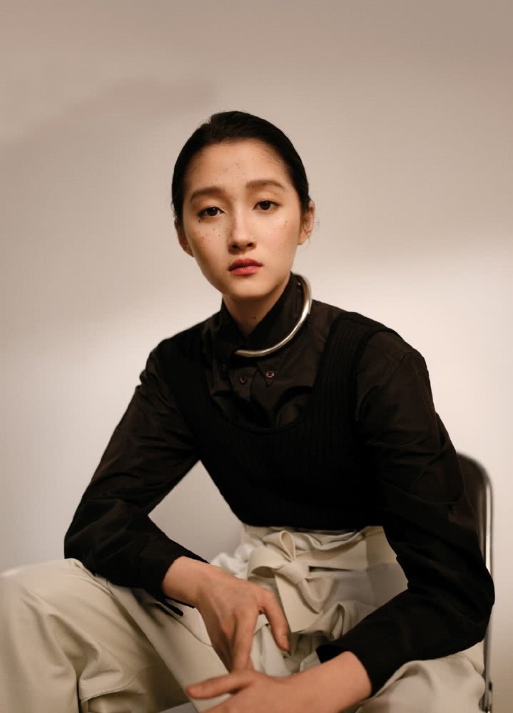 这张写真中关晓彤身穿一件黑色的衬衫搭配上下半身这条浅色的工装裤,感觉非常帅气个性,给人一种干练爽朗的既视感,依然是非常迷人的。