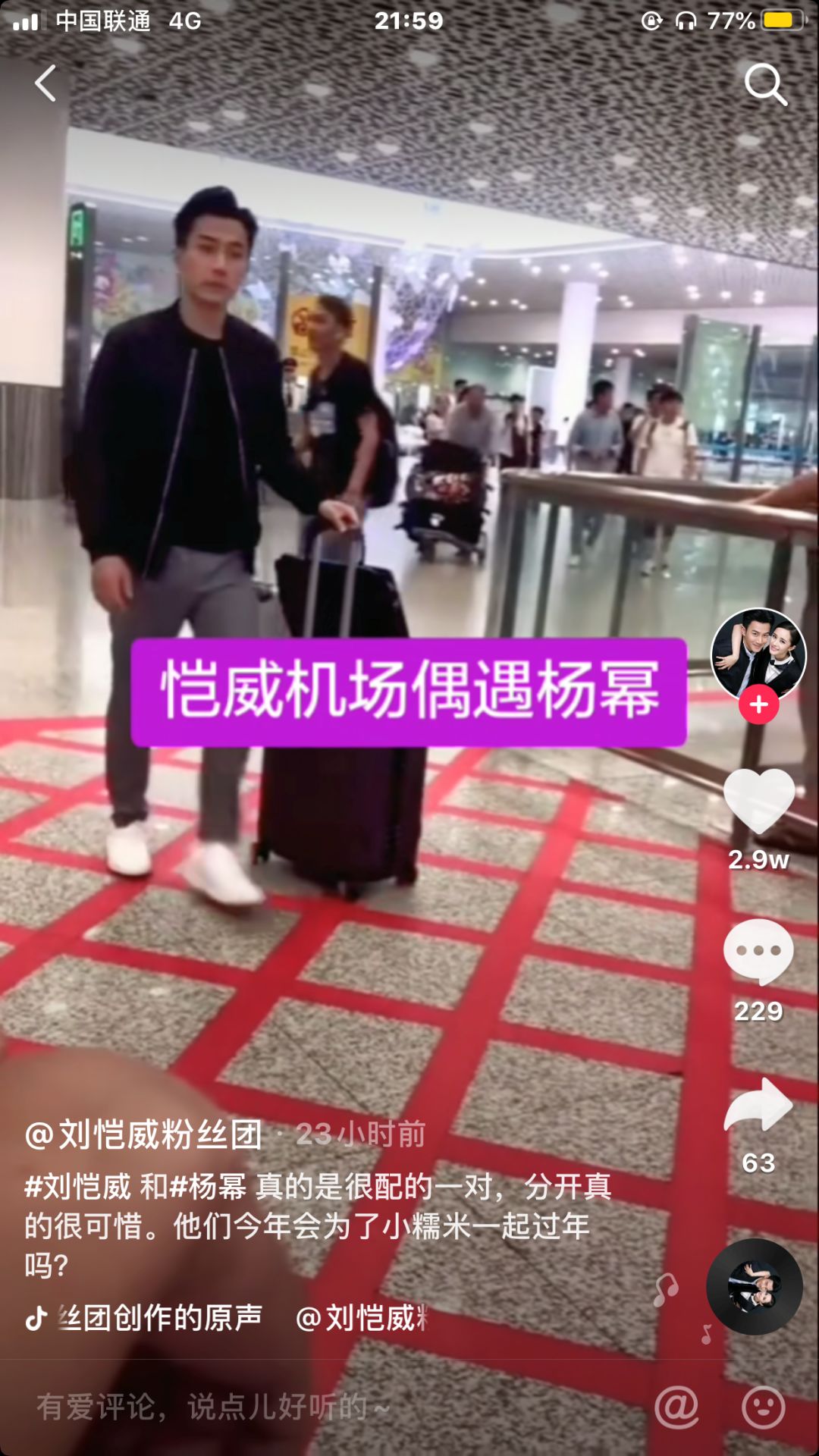 当时我怀疑是有人单方面炒作,因为发布这个抖音的人,名字叫刘恺威粉丝团,这种粉丝团你们知道的,多半是工作室开的