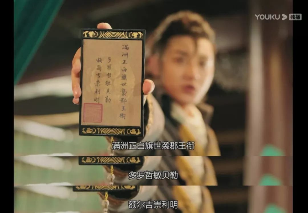满洲正白旗世袭郡王衔多罗哲敏贝勒额尔吉·崇利明,黄子韬饰演的男主角崇利明一出场就是开挂般的存在,名字不仅有着杰克苏般的霸道总裁既视感,人物设定和故事剧情更是开了金手指男主的爽文路线。第一集为了崇利明帮助阿易摆脱官兵逮捕,先是掰折了领头的手腕,亮出腰间“巨型”名牌,一连串名号都写满了。