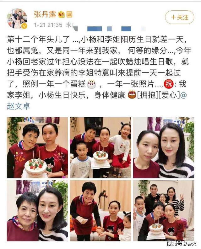 1月21日晚,演员赵文卓的妻子张丹露在某社交平台上为自家保姆庆生,字里行间都是对保姆的感谢之情。