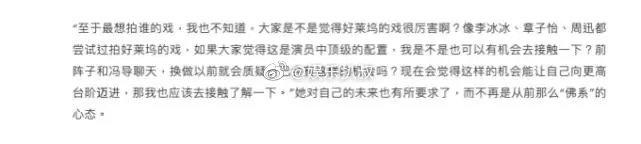 至于想拍谁的戏,郑爽也不知道,但有机会能让自己向更高的台阶迈进,她会去接触了解一下。像李冰冰、章子怡,周迅都尝试拍过好莱坞的戏,她也梦想着和她们一样。