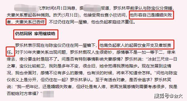 不同于很多夫妻劳燕分飞后相互指责,罗乐林在接受采访时即便称自己为"婚姻失败者",却还是愿意承担"家人的起居饮食开支及煮饭责任"。而他虽然与陈宝仪离婚,两人却没有离家,依旧住在同一个屋檐下。