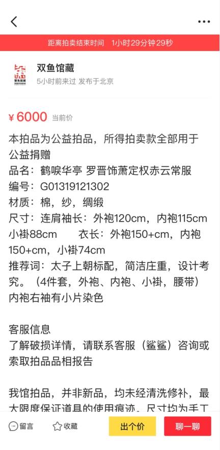 1月3日,闲鱼X鹤唳华亭义卖活动上线,剧中绝版服饰及道具通过抢拍义卖的方式,令剧迷和网友都兴致勃然。