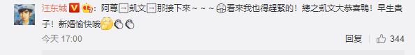 虽然网友们大吃一惊,但是男女双方的圈内好友应该早就知道他好事将近了,吴尊曾经在节目中cue过辰亦儒,说下一个有娃就是他了。当时,粉丝们还没有意识到吴尊的内涵,还以为只是随口开的一个玩笑而已!不过,作为飞轮海四人中第一个有娃的,他应该真的是特别希望好兄弟赶紧也升级奶爸模式吧。在辰亦儒的微博下,吴尊再次催生,惹得网友哭笑不得,称其像极了过年期间的那些话多的亲戚。
