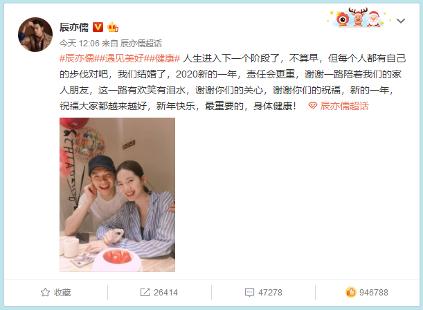 1月23日中午,辰亦儒发微博公布了自己结婚的消息,而女方为台湾艺人曾之乔。2020年,第一批90后已经步入而立之年,他们曾经的偶像结婚也不足为奇了。看着飞轮海组合中吴尊、辰亦儒两位好兄弟相继成婚,汪东城主动表示“看来我也要赶紧的”。