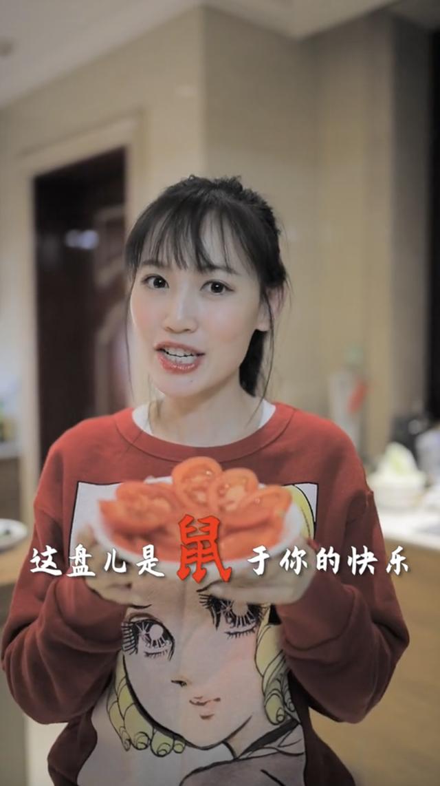 拿着一盘凉拌西红柿,说道这是“鼠”于你的快乐。
