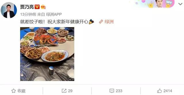 贾乃亮是晒出了一桌豪华海鲜大餐来祝大家新年健康,但是也对差饺子这件事略表遗憾。