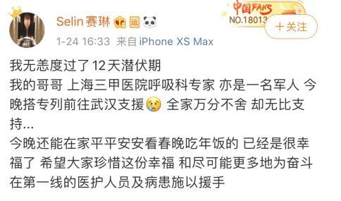 “我的哥哥,今晚搭专列前往武汉支援……能在电视前平平安安看春晚,已经是很幸福的了。”