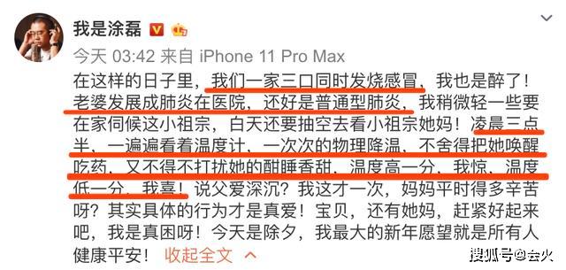 原标题:知名主持涂磊凌晨发文!紧要关头一家人突然发烧,医院守护太
