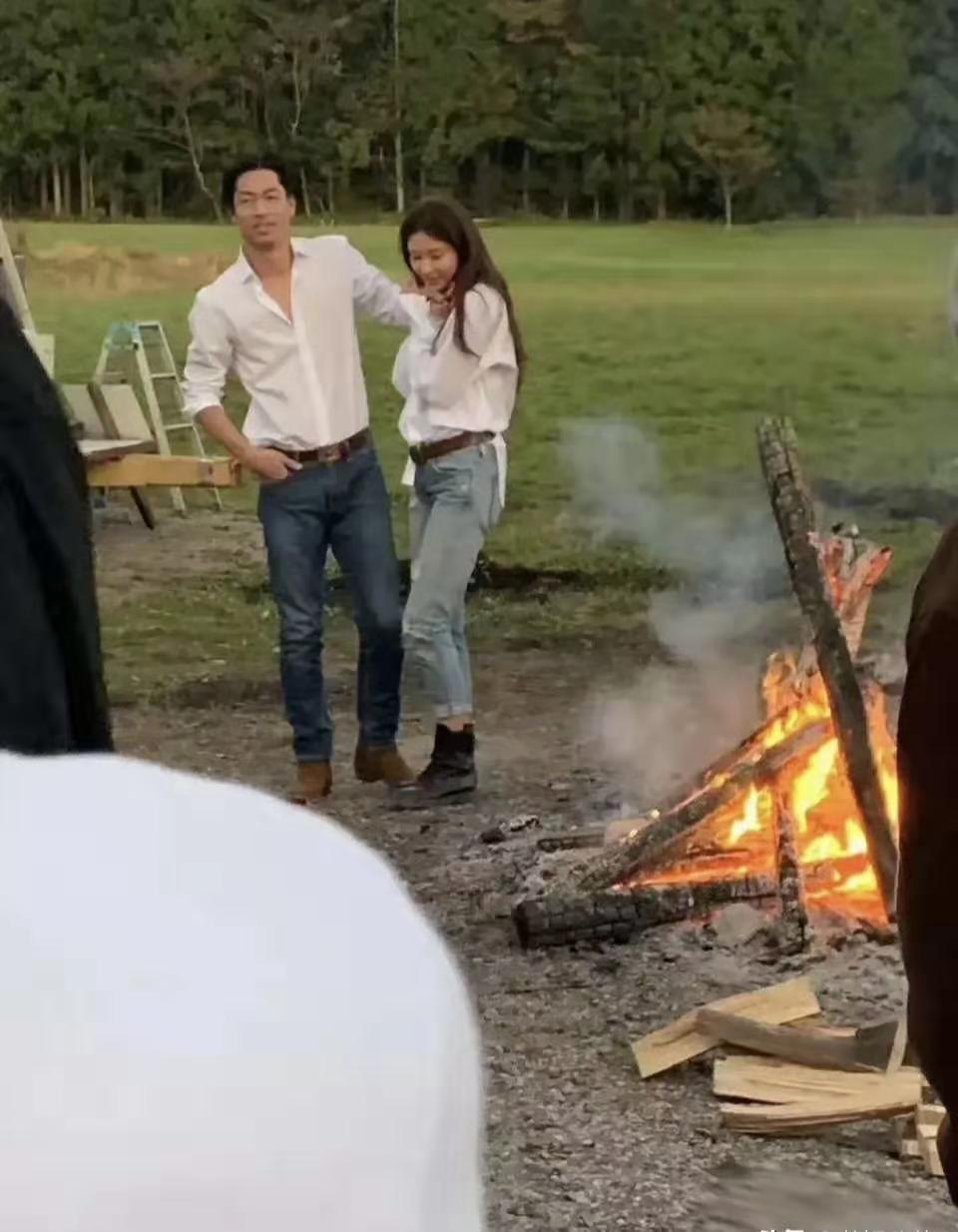 前几日,媒体爆料林志玲与日本老公黑泽郎平将在台北举行婚礼的消息,今天,林志玲夫妇合体拍婚纱照的消息又爆上了热搜,二人穿着情侣装大撒狗粮,林志玲和黑泽郎平在野外点起篝火取景拍晒,看起来好不惬意。