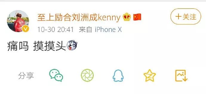 接着刘洲成就跟着发了一条“痛吗,摸摸头”