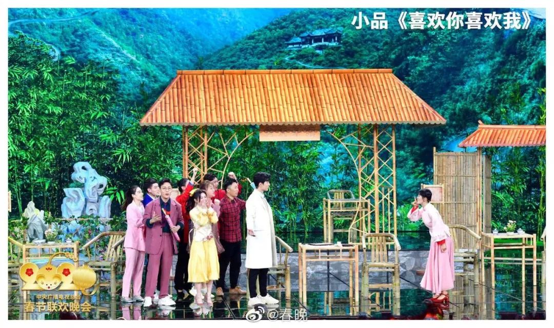 小品《喜欢你喜欢我》则集结了谢娜、肖战、鞠婧祎、杨迪等演员。肖战凭借《陈情令》爆红之后,堪称2019年的顶级流量。《喜欢你喜欢我》自带一种轻松愉悦的喜剧风格,以爱情为主打,温情幽默,借用肖战在春晚前接受采访时的回答就是“会让你想马上拥抱,想拥有爱情”。