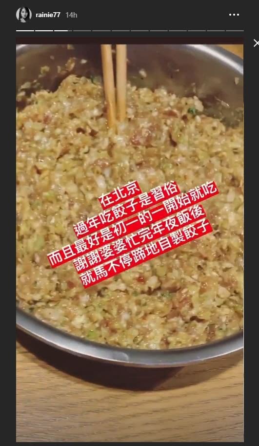 杨丞琳去年嫁给了李荣浩,后者要上春晚,女方就到北京过年,丈夫工作的时候,她陪着婆婆包饺子,等到李荣浩结束春晚工作,两夫妻一起迎接新春。