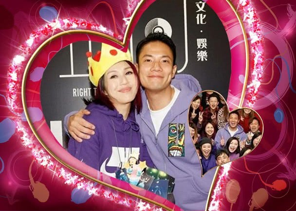 丁子高在社交网上载公司团年饭的照片,他为老婆杨千嬅戴上皇冠致敬,并感性发文,向老婆示爱。