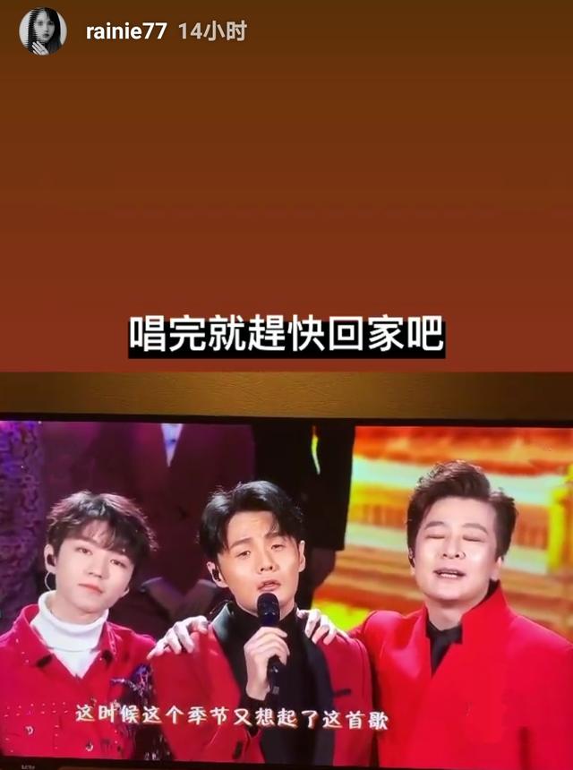 照片中弟弟李荣浩穿着红色西装,睁着他的小眼睛,看起来一脸情深,唱得十分投入。要知道春晚的节目都是经过层层筛选的,老公上春晚,妻子和婆婆在家里看着,这画面想想都觉得很温馨,一定充满了自豪感!