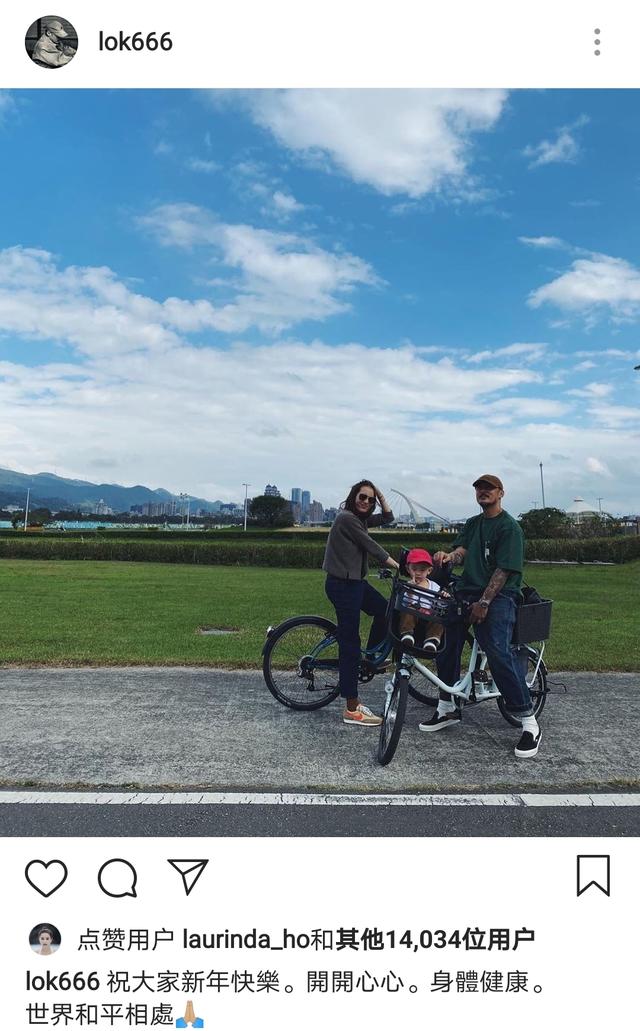 原标题:余文乐初一晒全家福,与老婆一起骑单车,儿子罕见露正脸模样
