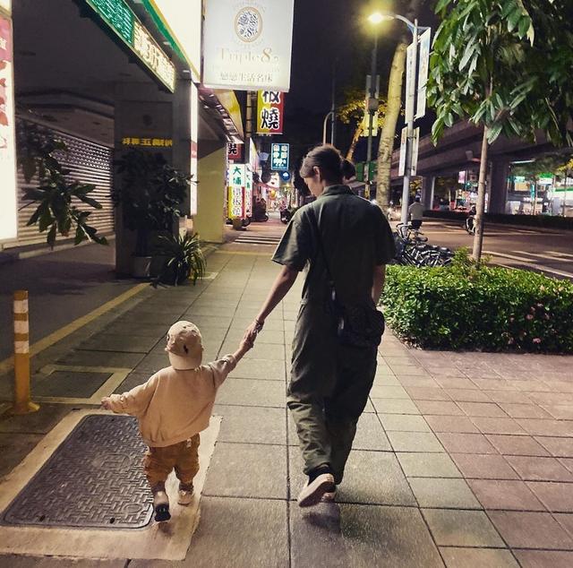 Cody穿着白色卫衣,裤子挺长,走路很酷,看这模样像是想要去玩滑滑梯了,六叔要不就是牵着儿子,要不就是在身后时刻保护着,是父爱爆棚的好爸爸!