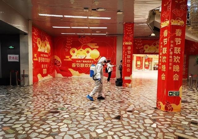 原标题:防范措施到位!春晚主会场正常直播,工作人员进行全面消毒保