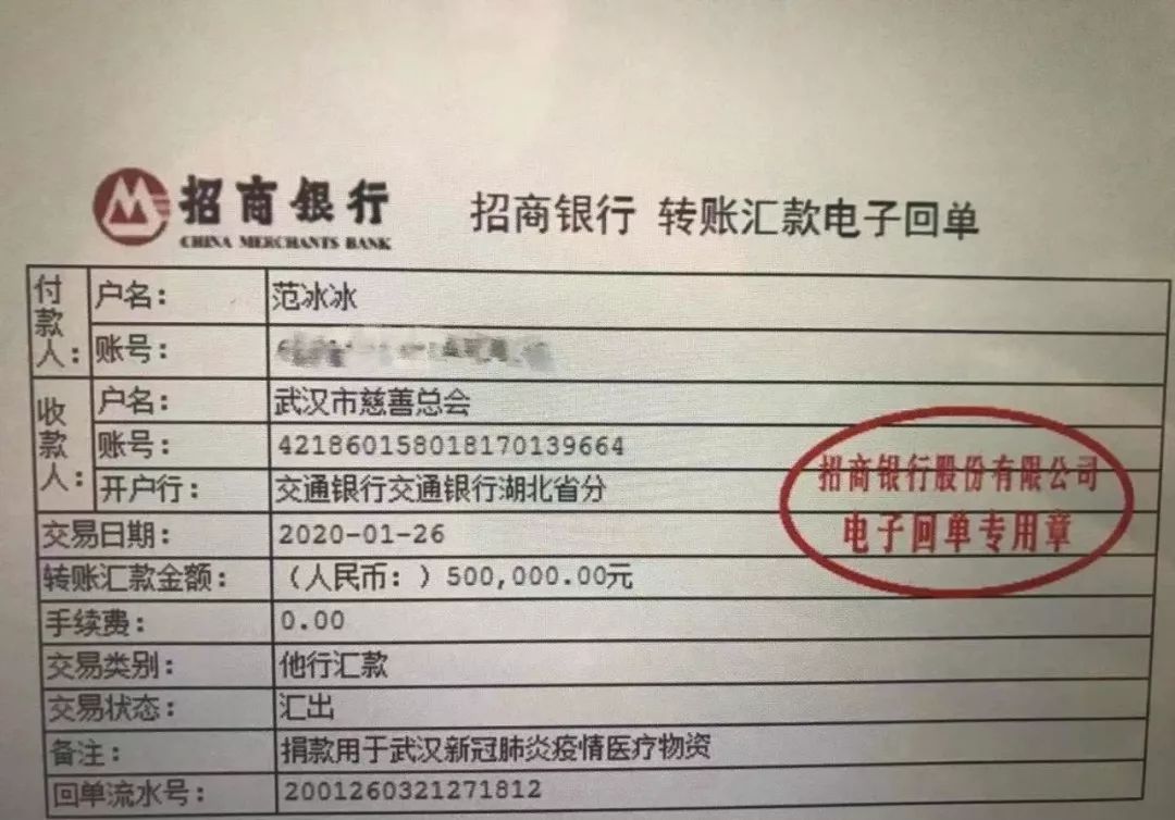 范冰冰这次捐款非常低调,自己和工作室都没有对外宣传,这还是范冰冰粉丝团公布的,户名就是范冰冰本人,积极主动的捐赠受到不少人的称赞,范冰冰这些年一直在做公益,在自己营业受到影响的当下,还能拿出50万,“范爷”真的人美心善有没有,要为范爷点个赞。
