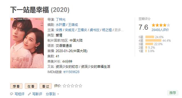 我们从豆瓣评分来看,目前《下一站是幸福》还落在《陈情令》之后很多,并且,有人说曾经说,《下一站是幸福》已经飙到了8分,但是有人说表示质疑,给8分给高了!