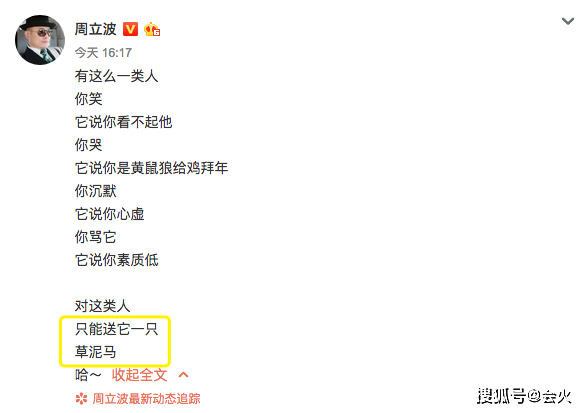 引起争议后,周立波删除了这个视频,而且还发文疑似回应此事,不过他的回应也着实让人看不懂。