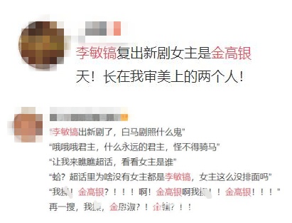 此前,李敏镐和金高银合作的消息一传出,就有不少我国网友说:“我可以”“这两个刚好都是我好感的演员”,但也有质疑“颜值不搭”的声音。